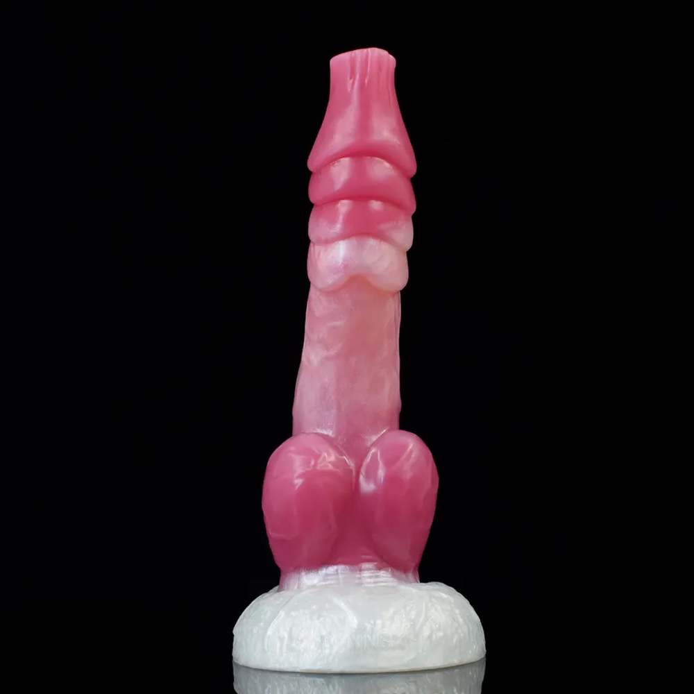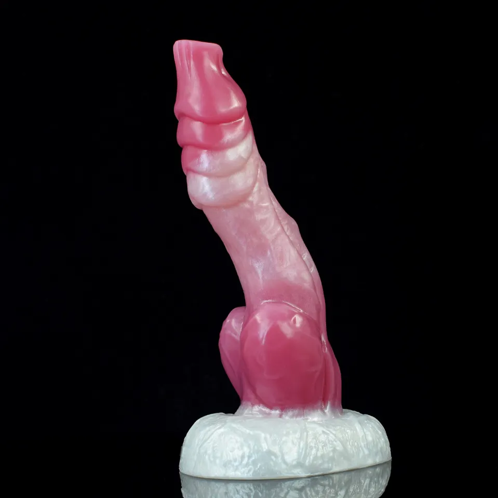 The Gilled Knot Dildo is a dildo coloured in Alluring Glimmer, a glittery pink gradient. This canine inspired dildo features a ribbed shaft and an enlarged bulb near the base, ensuring that it gets locked firmly in place while inside of you. This dildo is perfect for those who want to experience different textures for a unique sexual experience.