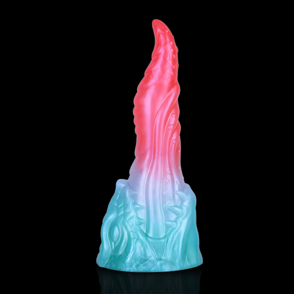 The Hungering Dragon Dildo is a dildo coloured in Blooming Tranquility, a frosty blue to pink gradient. This dildo is shaped to resemble a large tongue capable of more than just teasing you, with a dragons head as the base. This dildo is perfect for someone who wants an immersive experience of being pleasured by a dragon.