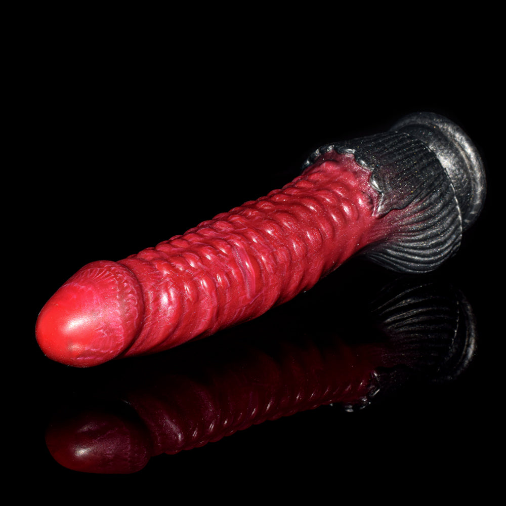 The Ribbed Dildo is a dildo coloured in Carnal Lust, a blood red gradient. This dildo features defined bumps ribbing along the shaft to enhance pleasure. This dildo is perfect for those who want to experience new and exciting textures while being pleasured.