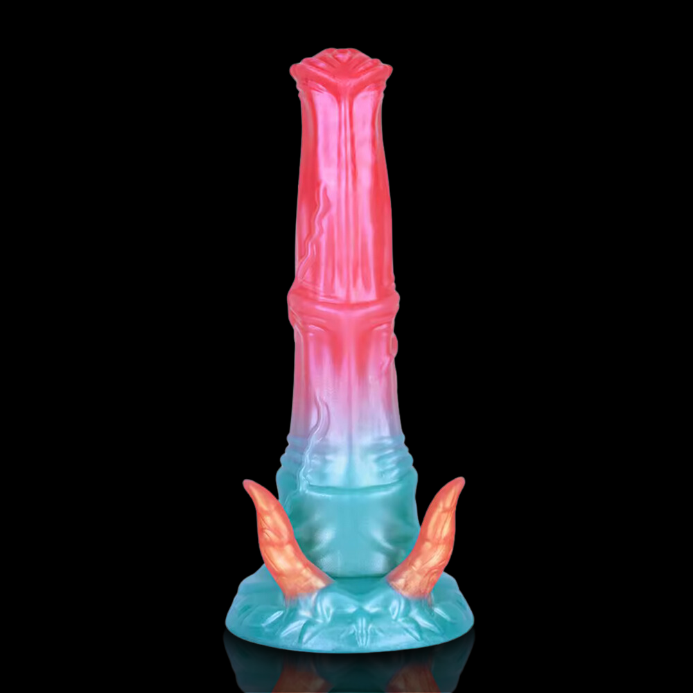The Satyr Dildo is a dildo coloured in Blooming Tranquility, a frosty blue to pink gradient. This horse inspired dildo features a flat head, a long ribbed shaft just like the real thing, and a pair of horns emerging from the base. This dildo is perfect for those who want to experience a different, exciting way of being pleasured.