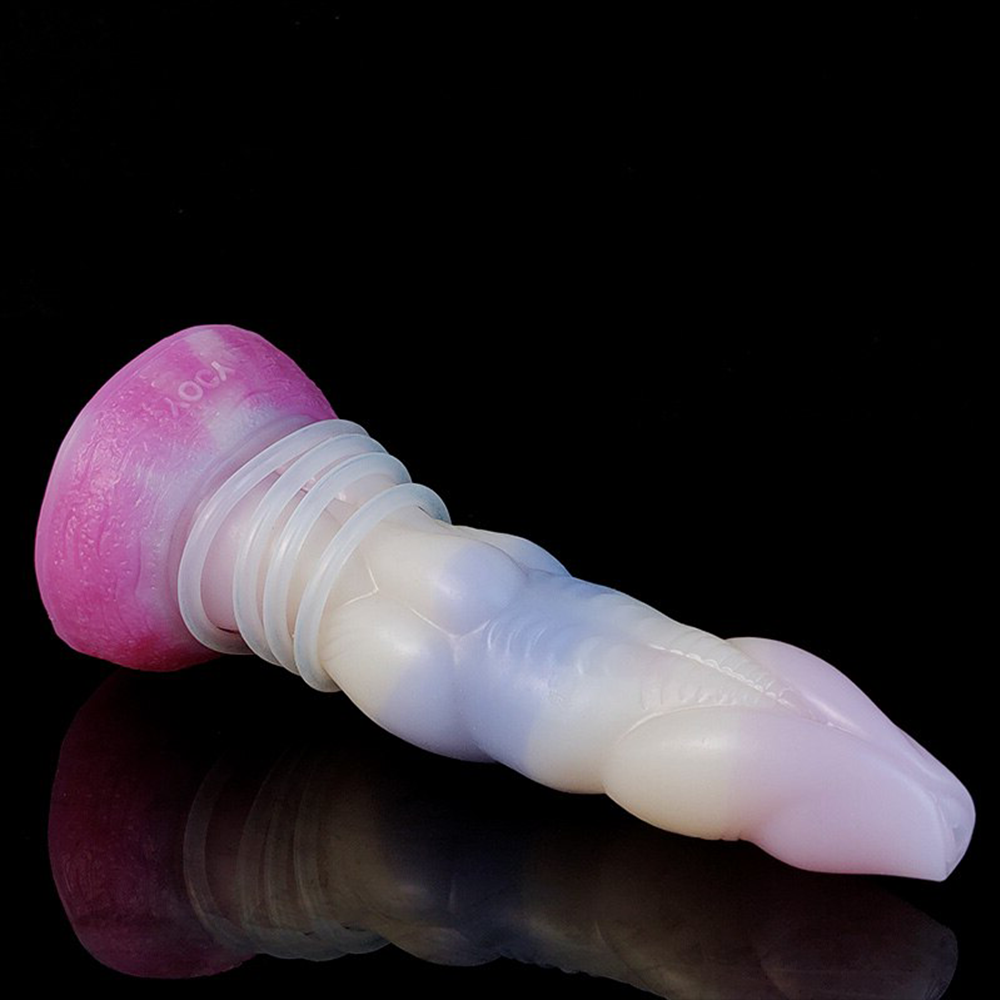 The Squirting Merman Dildo is a dildo coloured in Ethereal Tides, a soft pastel gradient. This merman inspired dildo features a uniquely shaped shaft with ribbing that resembles gills, as well as a cumtube that can be used to simulate ejaculation. This dildo is perfect for those who fulfil their fantasy of sleeping with a merman that can fill them up in more ways than one.