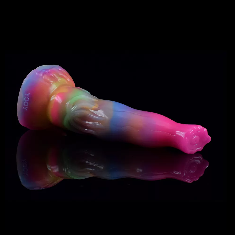 The Wyvern Dildo is a dildo coloured in Radiant Sunset, a vibrant gradient that glows in the dark. This unique dildo features a flat head and a distinct, wavy design that gradually gets bigger until you reach the base of the shaft. This dildo is perfect for those wanting to brighten up their sex life with a new and exciting toy.